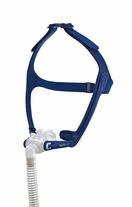 - Headgear Unlike any headgear before, the Swift LT uses a patented rotating barrel to adjust the pillow angle. The stability arms expand to accommodate most facial widths including narrow or wide faces.